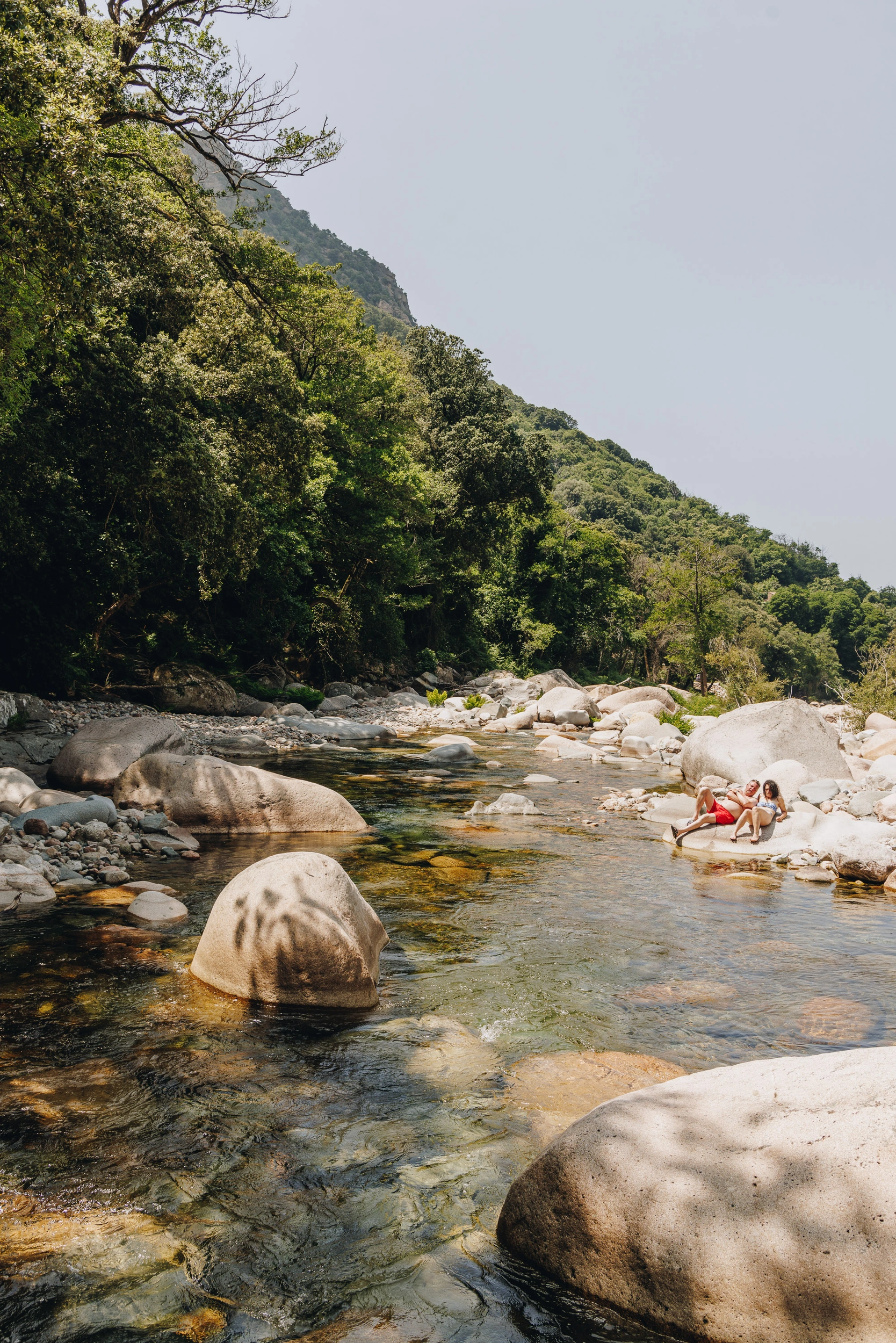 Juste en contrebas du camping, un sentier s’enfonce dans le maquis et débouche sur la rivière située à seulement cinq minutes à pied. Là, des piscines naturelles creusées dans la roche vous invitent à une baignade fraîche, loin du tumulte.